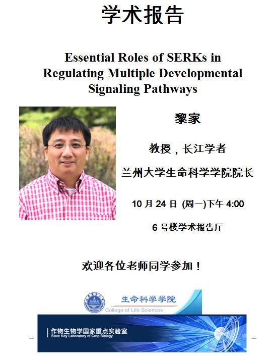 生命科學學院-長江學者黎家教授學術報告