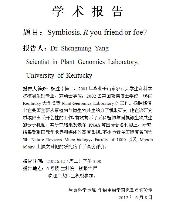 美國肯塔基大學楊勝銘博士來我校做學術報告