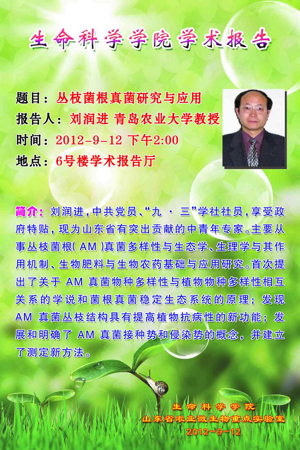 生科院:青島農業大學劉潤進教授學術報告