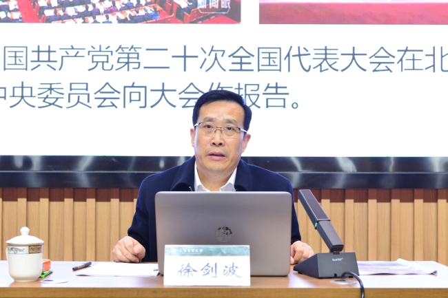 徐劍波指出,黨的二十大回顧總結了過去5年的工作和新時代10年的偉大變革,闡述了開辟馬克思主義中國化時代化新境界、中國式現代化的中國特色和本質要求等重大問題,對全面建設社會主義現代化國家、全面推進中華民族偉大復興進行了戰略謀劃,對統籌推進“五位一體”總體布局、協調推進“四個全面”戰略布局作出了全面部署,對于動員全黨全國各族人民更加緊密地團結在以習近平同志為核心的黨中央周圍,為全面建設社會主義現代化國家、全面推進中華民族偉大復興而團結奮斗,具有重大現實意義和深遠歷史意義。