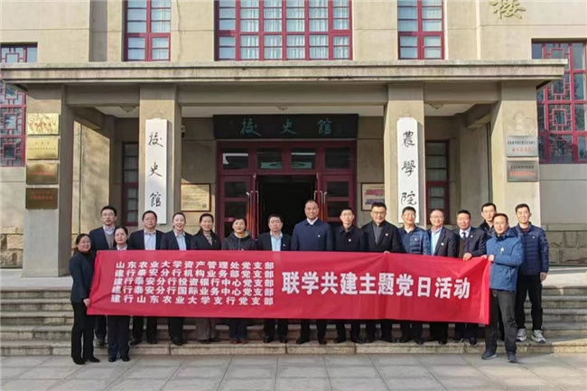 2月25日,建設銀行泰安分行機構業務部黨支部、投資銀行中心黨支部、國際業務中心黨支部和農大支行黨支部等四個黨支部來校與山東農業大學資產處黨支部開展“學習黨的二十大精神 傳承紅色文化”聯學共建主題黨日活動。學校黨委常委、副校長單國杰以普通黨員身份出席活動并參加座談交流會。建設銀行泰安分行黨委委員、副行長程建華參加活動。