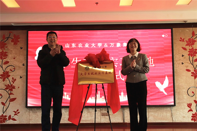 近日,山東農(nóng)業(yè)大學大學生就業(yè)實習基地簽約揭牌儀式在山東萬豪集團舉行,學校黨委副書記張然、萬豪集團董事長丁紹武共同為基地揭牌。