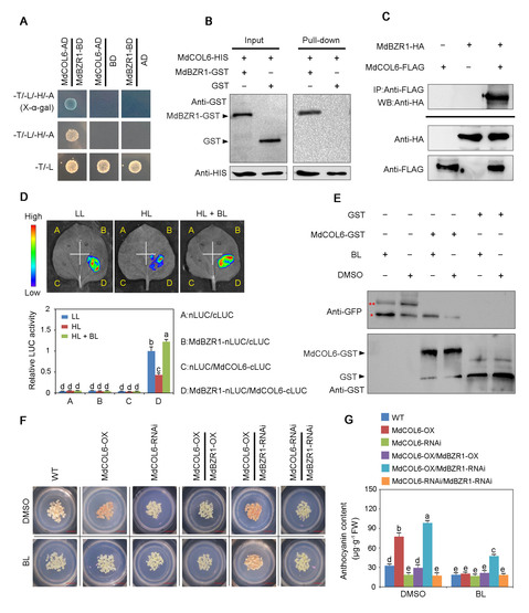 圖1 MdBZR1負(fù)調(diào)控MdCOL6介導(dǎo)的花青苷合成