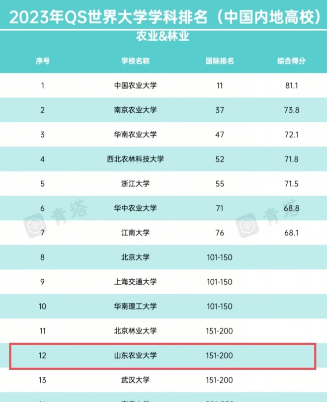 3月22日,QS全球教育集團發布了第13次世界大學學科排名。山東農業大學農業&林業學科表現強勁,再入全球200強,與中國大陸其他98所高校同時入榜。
