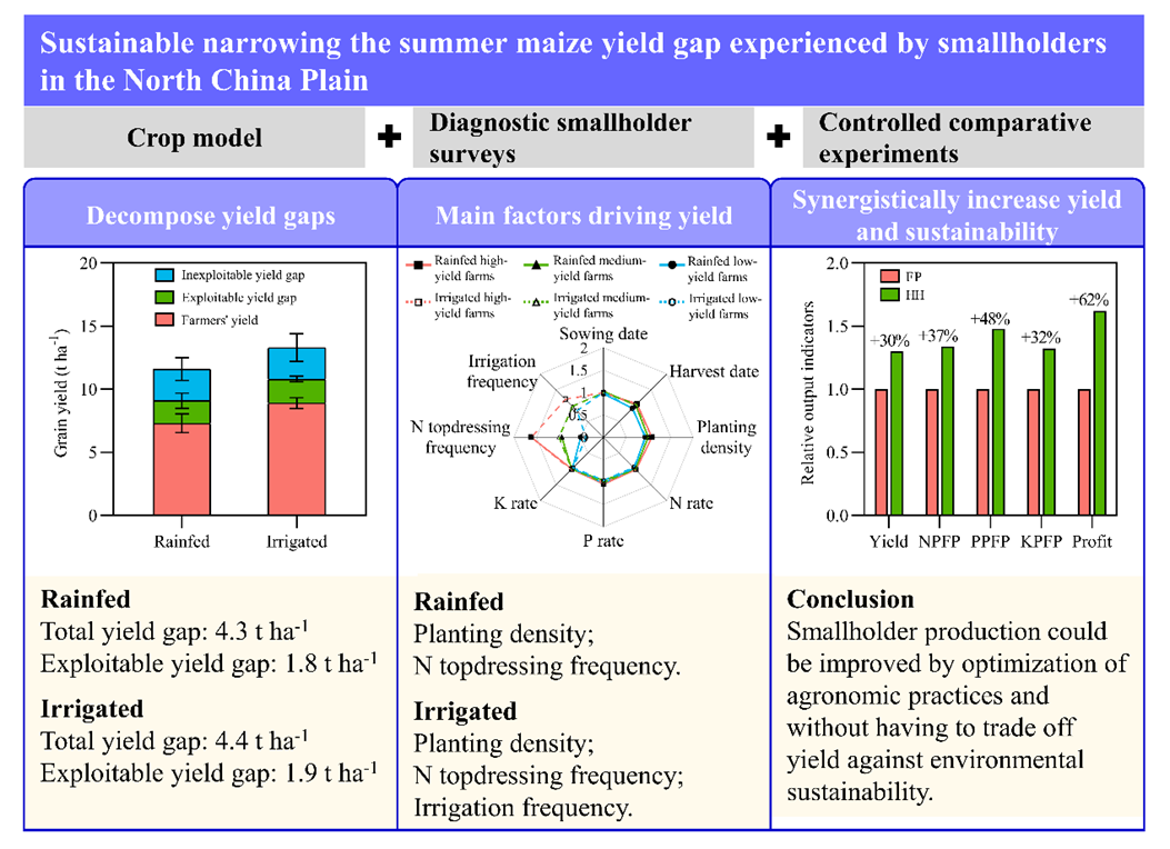 近日,農學院劉鵬教授團隊在國際著名期刊《Agricultural Systems》在線發表了題為“A sustainable approach to narrowing the summer maize yield gap experienced by smallholders in the North China Plain”的研究論文。王洪章博士為該論文的第一作者,劉鵬教授為該論文的通訊作者。