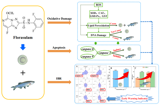 該研究評估了暴露于雙氟磺草胺對不同生長階段斑馬魚(幼魚和成魚)氧化損傷和細胞凋亡的影響,為評價環境相關濃度下雙氟磺草胺對斑馬魚的生態毒性提供了參考數據。