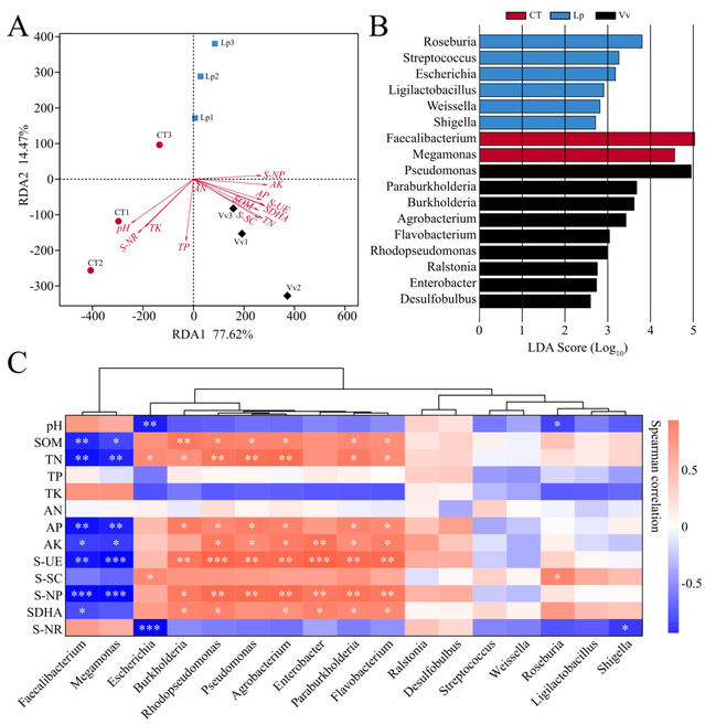 核桃是我國重要的木本油料樹種,核桃園生草是一種生態環保、省工易行的土壤管理措施。論文利用16S rRNA基因測序和宏基因組測序,分析了核桃園間作長柔毛野豌豆、核桃園間作黑麥草和清耕三種系統的根際土壤微生物的差異。結果發現,核桃園生草,尤其是核桃園間作長柔毛野豌豆對根際微生物組成和結構及土壤理化性質有較大影響。間作長柔毛野豌豆核桃園根際微生物具有較高的氮循環和碳水化合物代謝潛力,這可能與伯克氏菌屬(Burkholderia),紅假單胞菌屬(Rhodopseudomonas),假單胞菌屬(Pseudomonas),農桿菌屬(Agrobacterium),耐咖啡因伯克霍爾德氏菌(Paraburkholderia)和黃桿菌屬(Flavobacterium)細菌的富集有關。研究結果為核桃園生草管理提供了依據,也為適宜于核桃園的微生物種群的鑒定篩選奠定了基礎。