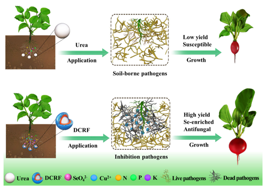 圖2. DCRF的控釋、硒供應和抗真菌性能示意圖
