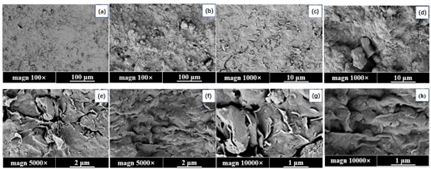 圖1. 原狀和改性膨潤土泥皮SEM圖