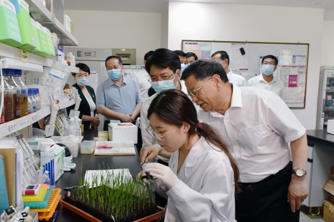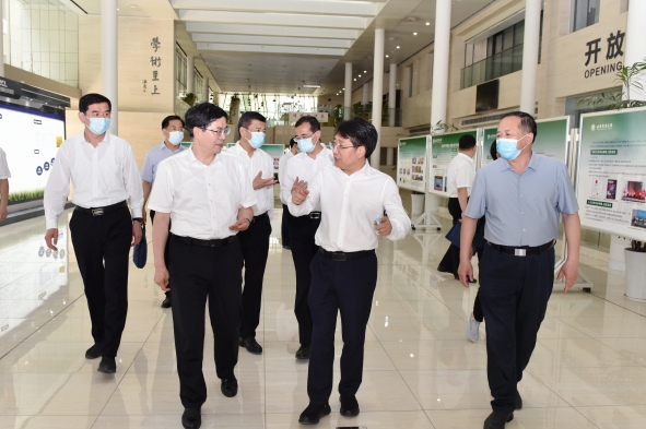 鄧云鋒參觀學校校史館,調(diào)研小麥育種全國重點實驗室、小麥遺傳改良及基因組學團隊實驗室和果樹種質(zhì)資源與遺傳育種團隊實驗室,詳細了解學校辦學治校、人才培養(yǎng)、科研創(chuàng)新、成果轉(zhuǎn)化等情況,聽取學校主題教育及“雙一流”建設成效匯報,對學校在科學研究、學科建設、人才培養(yǎng)等方面取得的成就給予充分肯定。他指出,長期以來,山東農(nóng)業(yè)大學矢志為國育才、持續(xù)探索創(chuàng)新,為國家經(jīng)濟社會建設和地方發(fā)展作出重要貢獻。希望學校深入學習貫徹習近平總書記關(guān)于教育的重要論述,主動與國內(nèi)外高校、科研院所開展務實合作,聯(lián)合開展科技攻關(guān)、人才培養(yǎng)、平臺建設等,助力學校“雙一流”建設。要聚焦服務國家糧食安全,推進科產(chǎn)教深度融合,實現(xiàn)教育鏈、人才鏈與創(chuàng)新鏈、產(chǎn)業(yè)鏈有機銜接,攜手打造全國乃至全球頂尖的小麥產(chǎn)業(yè)研究院,為推動農(nóng)業(yè)強省建設作出更大貢獻。省委、省政府將一如既往支持山東農(nóng)業(yè)大學發(fā)展,加強主動服務和要素保障,為學校高質(zhì)量發(fā)展營造良好環(huán)境,全力推動學校“雙一流”建設。