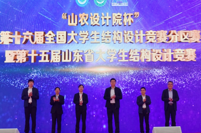 5月19日至21日,“山農設計院杯”第十六屆全國大學生結構設計競賽分區賽暨第十五屆山東省大學生結構設計競賽在山東農業大學舉辦,學校黨委常委、副校長王勇,全國大學生結構設計競賽山東省分賽區副秘書長雷淑忠出席開幕式并致辭。