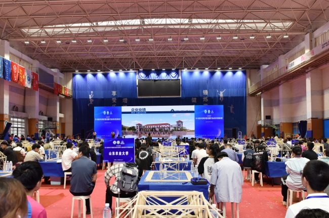 本次競賽由山東省大學生結構設計競賽委員會主辦、山東農業大學承辦,為期3天。競賽以拱形農業大棚結構為基本單元,要求參賽者針對豎向集中荷載、分布荷載及水平荷載等多種工況下的大棚結構進行受力分析、模型制作及加載試驗,具有極強的專業性。來自山東省的34所高校、69支參賽隊參加本次競賽。經過激烈角逐,本次競賽共評出一等獎14項、二等獎26項、三等獎27項、優秀獎2項、最佳制作獎1項、最佳創意獎1項、優秀組織單位獎10項。