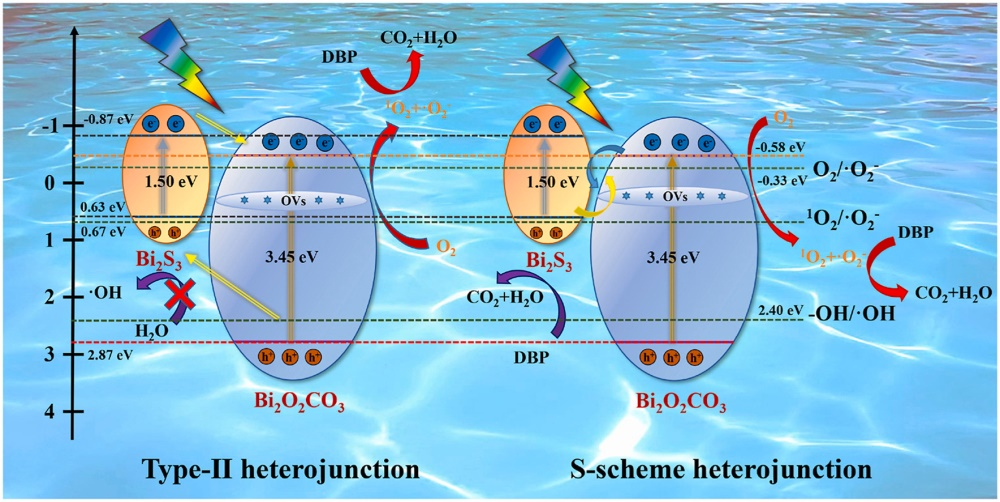 圖1. Bi2O2CO3/Bi2S3光催化劑降解DBP機(jī)理示意圖