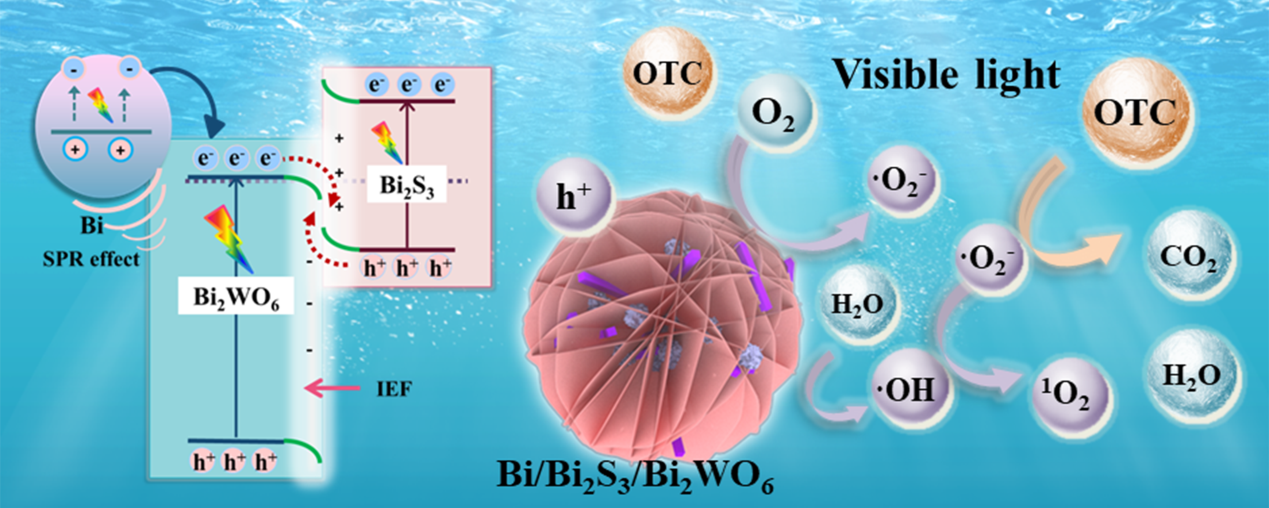 進(jìn)展2:在期刊《Environmental Pollution》發(fā)表了題為“One-pot solvothermal synthesis of Bi/Bi2S3/Bi2WO6S-scheme heterojunction with enhanced photoactivity towards antibiotic oxytetracycline degradation under visible light”的研究論文。王軍教授為該論文的通訊作者,博士研究生丁佳為該論文的第一作者,山東農(nóng)業(yè)大學(xué)為論文第一完成單位。
