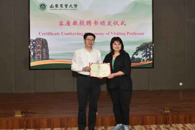 巴良·阿努什院士真誠感謝學校的熱情接待,對學校近年來取得的成就表示贊賞,期待此次訪問能為雙方搭建溝通橋梁,增進合作與友誼。她通過帶過來的宣傳片介紹了烏克蘭國家農業科學院的基本情況,表示回國后會盡快推動小麥育種等相關專家,與我校專家學者交流研討,探尋合作渠道。從冷暢儉手中接過客座教授聘書,巴良·阿努什院士非常激動,說自己將這個聘書視作極高榮譽,會盡自己所能讓雙方合作結出美麗果實。