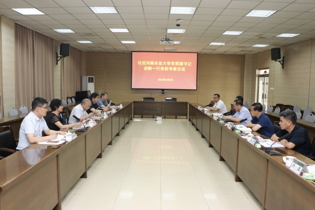 6月8日,河南農業大學黨委副書記游舸一行來校,就重大議事決策機制、督查督辦機制、高層次人才引育、“三全育人”、全國文明校園建設等工作進行考察調研。學校黨委副書記嵇景濤會見客人并參加座談交流。