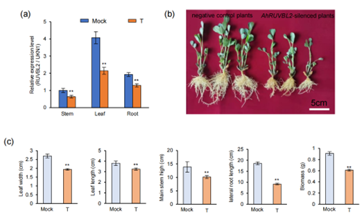 圖3 AhRUVBL2沉默花生株系的表型分析