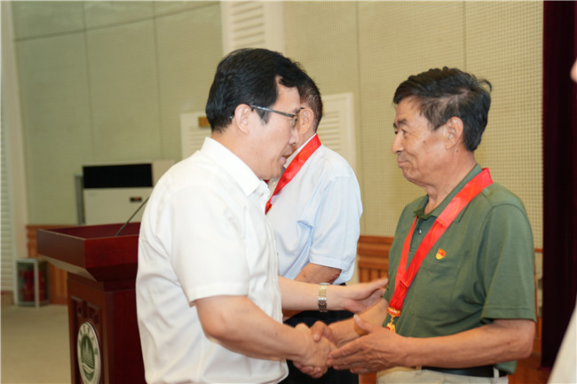 省委第二十五巡回指導(dǎo)組組長崔鳳友,省委主題教育領(lǐng)導(dǎo)小組辦公室王新明、董超出席讀書班結(jié)業(yè)式。學(xué)校黨委書記徐劍波向8位光榮在黨50年、為學(xué)校建設(shè)奉獻(xiàn)畢生精力的老黨員頒發(fā)紀(jì)念章。黨委副書記、校長冷暢儉為2023年新發(fā)展的學(xué)生黨員代表佩戴黨徽。