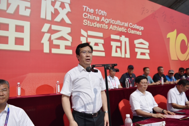 夏至?xí)r節(jié),端午濃情。6月21日,中國高等農(nóng)業(yè)院校第十屆大學(xué)生田徑運動會在泰山腳下的山東農(nóng)業(yè)大學(xué)舉行,來自中國農(nóng)業(yè)大學(xué)、南京農(nóng)業(yè)大學(xué)、北京林業(yè)大學(xué)等36所農(nóng)業(yè)院校的近800名運動員報名參賽。山東農(nóng)業(yè)大學(xué)黨委書記徐劍波宣布運動會開幕,黨委副書記、校長冷暢儉致開幕詞。
