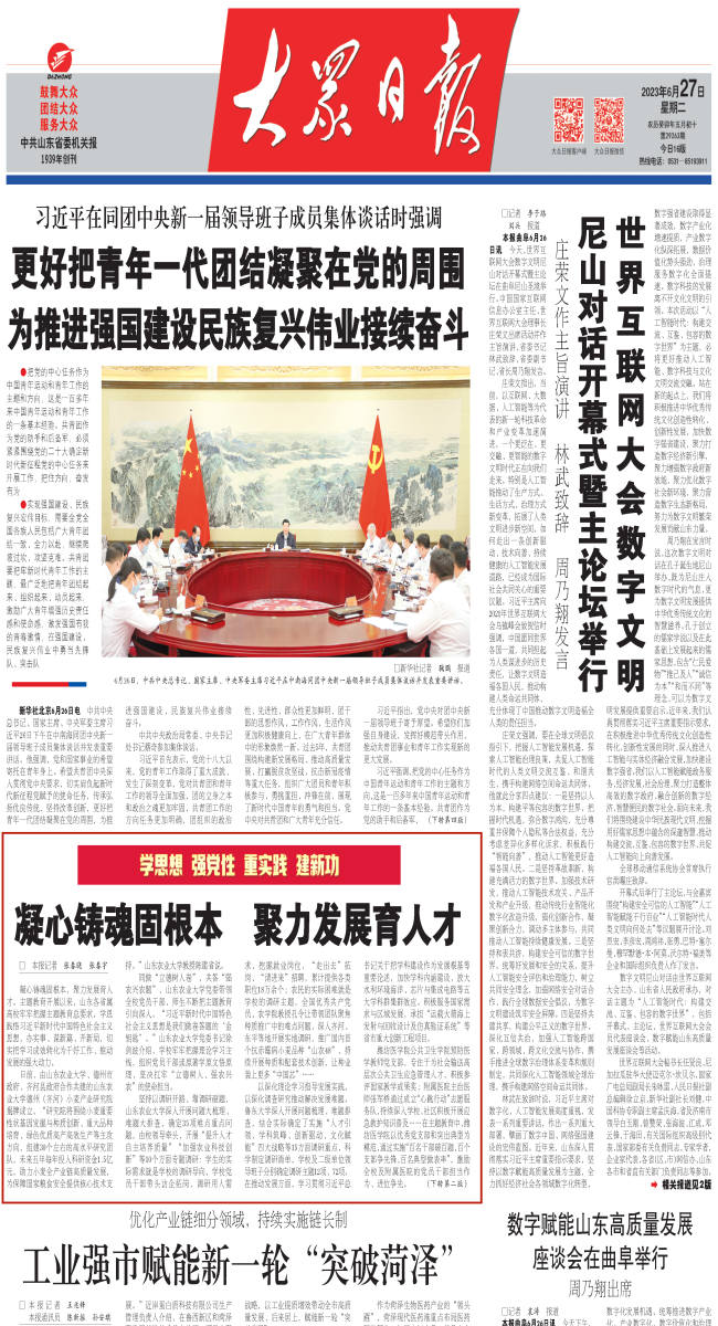 6月27日出版的大眾日?qǐng)?bào)在頭版“學(xué)思想 強(qiáng)黨性 重實(shí)踐 建新功”專欄刊發(fā)文章《凝心鑄魂固根本 聚力發(fā)展育人才》報(bào)道我校深入開展學(xué)習(xí)貫徹習(xí)近平新時(shí)代中國特色社會(huì)主義思想主題教育的典型做法。文章指出,山東農(nóng)業(yè)大學(xué)同做“立德樹人卷”,共答“強(qiáng)農(nóng)興農(nóng)題”,學(xué)校黨委帶領(lǐng)全校黨員干部、師生不斷把主題教育引向深入。文章圍繞學(xué)校堅(jiān)持以調(diào)研開路、靠調(diào)研破題,深入開展問題大梳理、難題大排查進(jìn)行深度報(bào)道。相關(guān)報(bào)道如下: