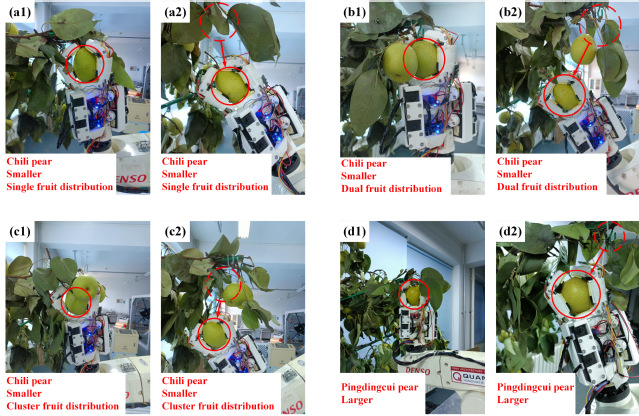 該研究構建了梨果收獲采摘平臺,并進行了模擬采摘試驗。試驗結果表明,該研究提出的仿生自適應繩驅梨果采摘末端執行器對不同品種、形狀和大小的梨果具有自適應抓取能力,抓取過程穩定,抓取動作響應速度快,可實現無損傷抓取,對促進梨果收獲自動化與智能化有重要意義,為后續水果采摘末端執行器的研究提供了學術和工程參考。