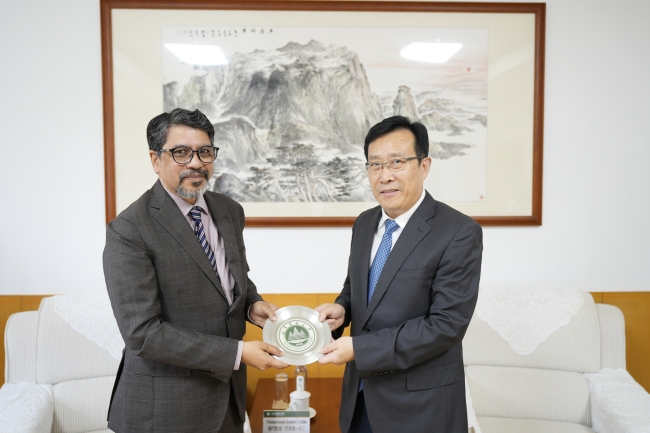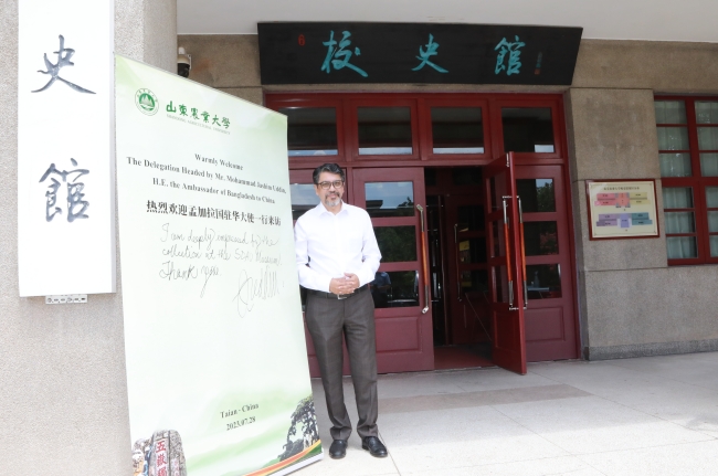 徐劍波對穆罕默德·賈西姆·烏丁一行的來訪表示熱烈歡迎,并介紹了我校的辦學優勢和特色。他說,中孟友誼源遠流長、歷久彌新。近年來,兩國在農業、教育、經濟等領域合作密切,成果豐碩。山東農業大學期待與孟加拉國的高校、科研機構等開展廣泛而深入的交流合作,共同為高質量建設“一帶一路”、落實全球發展倡議、推動構建人類命運共同體做出更大的貢獻。
