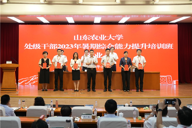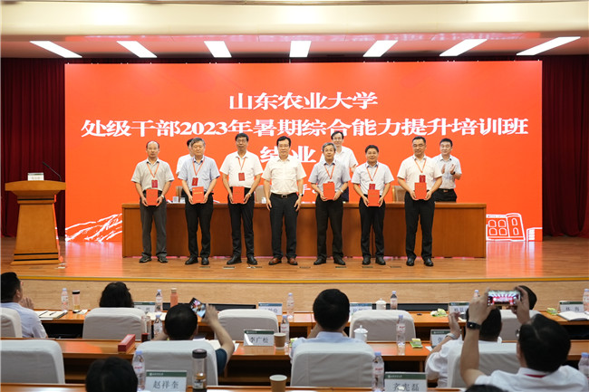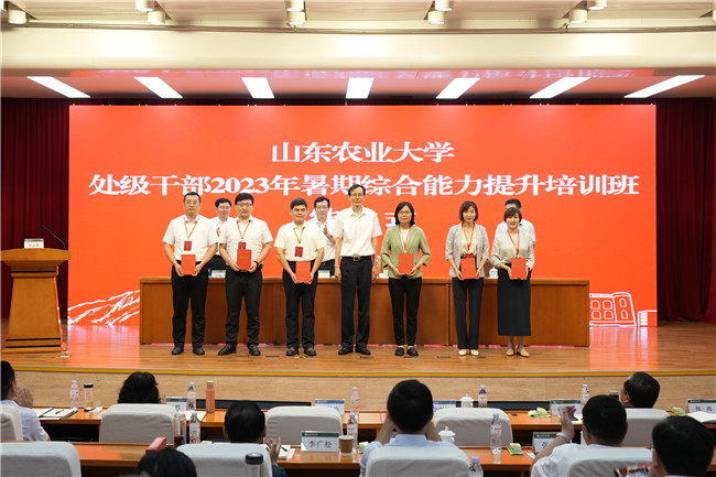 8月14日至18日,學(xué)校處級(jí)干部暑期綜合能力提升培訓(xùn)班在山東省干部學(xué)院舉行。省委主題教育第二十五巡回指導(dǎo)組組長(zhǎng)崔鳳友、山東省干部學(xué)院院長(zhǎng)馬林濤、省教育廳(省委教育工委)學(xué)校組織處處長(zhǎng)孫啟高出席活動(dòng)。學(xué)校黨委書(shū)記徐劍波以《堅(jiān)定信心勇?lián)?dāng)、沖鋒在前創(chuàng)一流,爭(zhēng)做一流農(nóng)業(yè)大學(xué)建設(shè)的排頭兵》為題作動(dòng)員講話。學(xué)校黨委副書(shū)記、校長(zhǎng)冷暢儉主持開(kāi)班式,學(xué)校領(lǐng)導(dǎo)班子成員全程跟班學(xué)習(xí)研討。