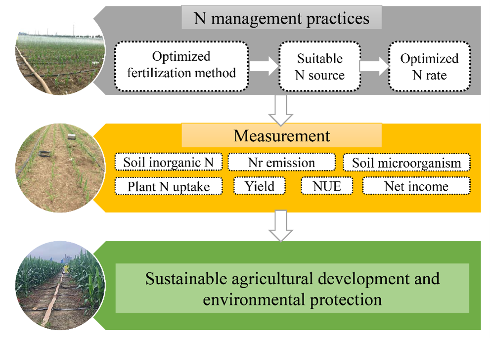 如何提高作物氮肥利用效率,減少氮肥損失對環(huán)境的污染,已引起人們的高度關注。該團隊通過設置不同施氮方式、氮肥類型和施氮量處理,研究水肥一體化施用尿素硝酸銨溶液(UAN)對氣態(tài)氮排放、氮肥利用效率以及微生物宏基因組等相關反應的綜合影響(圖1)。