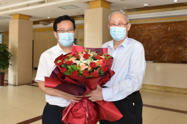 9月7日,在第39個教師節(jié)來臨之際,學(xué)校黨委書記徐劍波看望中國工程院院士束懷瑞、中國科學(xué)院院士印象初和中國工程院院士于振文,向他們贈送鮮花,致以誠摯的問候,感謝他們?yōu)閷W(xué)校事業(yè)發(fā)展作出的貢獻(xiàn)。