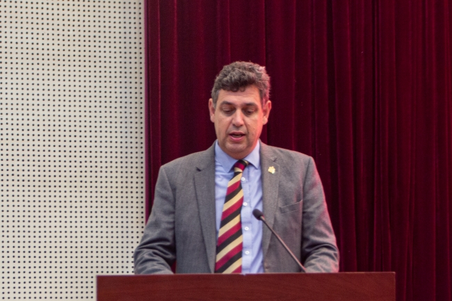 大衛(wèi)·麥恩在致辭中熱烈歡迎新同學(xué)加入兩校合作辦學(xué)大家庭,感謝山東農(nóng)大提供寶貴的機(jī)會(huì),讓他有幸在中國(guó)泰安歡迎英國(guó)皇家農(nóng)業(yè)大學(xué)的學(xué)生。他期待同學(xué)們通過四年大學(xué)的學(xué)習(xí),未來能夠在國(guó)際舞臺(tái)引領(lǐng)食品、土地管理、環(huán)境等學(xué)科領(lǐng)域行業(yè)變革、政策創(chuàng)新、企業(yè)發(fā)展,以合作交流拓寬國(guó)際視野、以學(xué)術(shù)造詣開啟智慧之門。