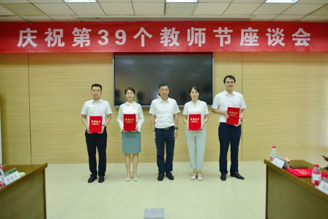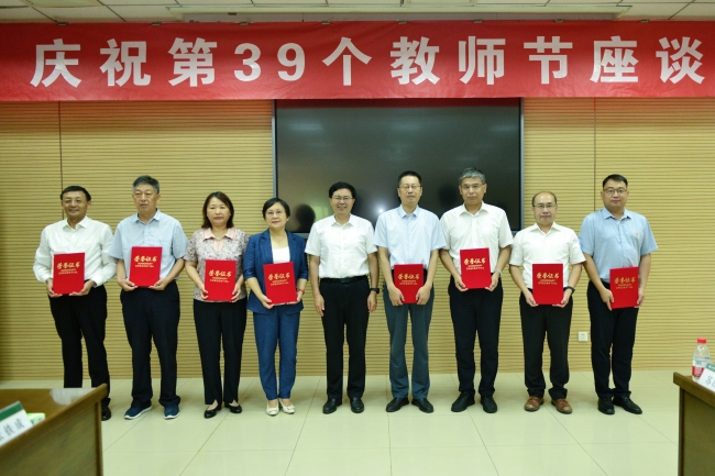 9月8日,第39個(gè)教師節(jié)來臨之際,學(xué)校召開座談會(huì)交流教育教學(xué)工作經(jīng)驗(yàn),表彰先優(yōu)典型。黨委書記徐劍波出席會(huì)議并講話,代表學(xué)校向奮戰(zhàn)在教書育人、管理育人、服務(wù)育人崗位上的全校教師和教育工作者致以節(jié)日的祝賀,勉勵(lì)大家要有堅(jiān)定的信念、高超的本領(lǐng)、高尚的師德、過硬的擔(dān)當(dāng),在學(xué)校爭創(chuàng)“雙一流”征程中作出應(yīng)有的貢獻(xiàn)。黨委副書記、校長冷暢儉,副校長林海出席座談會(huì)并為受表彰教師代表頒獎(jiǎng),黨委副書記嵇景濤主持座談會(huì)。黨委常委、副校長王勇宣讀表彰決定。
