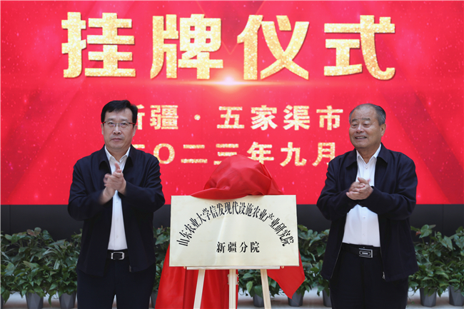 在五家渠市,徐劍波與信發(fā)集團董事局主席張學(xué)信一起,為山東農(nóng)業(yè)大學(xué)信發(fā)現(xiàn)代設(shè)施農(nóng)業(yè)產(chǎn)業(yè)研究院新疆分院揭牌,實地考察集團正在當(dāng)?shù)亟ㄔO(shè)的現(xiàn)代設(shè)施農(nóng)業(yè)項目,分析項目前景,謀劃發(fā)展思路。徐劍波要求學(xué)校專家團隊緊密對接當(dāng)?shù)噩F(xiàn)代農(nóng)業(yè)發(fā)展實際,搶抓機遇,整合資源,鞏固優(yōu)勢,做強力量,與企業(yè)凝聚攻堅合力,在新疆這片廣闊土地上寫好山東農(nóng)大人科教興農(nóng)的新篇章。