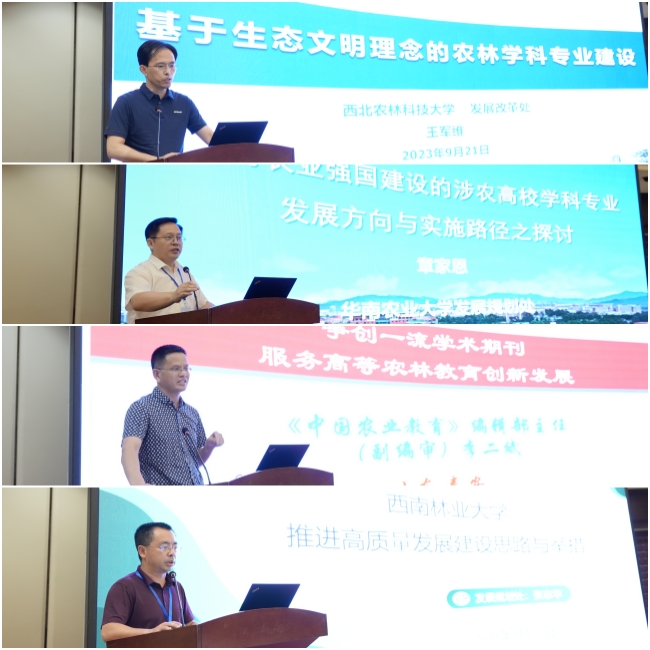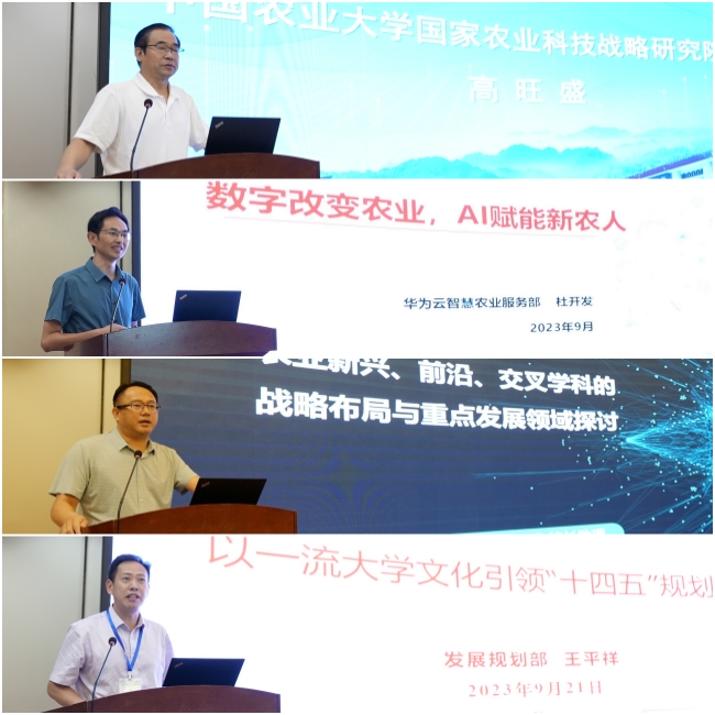 開幕式后,中國農(nóng)業(yè)大學(xué)國家農(nóng)業(yè)科技戰(zhàn)略研究院院長高旺盛,華為云計(jì)算技術(shù)有限公司智慧農(nóng)業(yè)顧問杜開發(fā),中國農(nóng)業(yè)大學(xué)校長助理、發(fā)展規(guī)劃處處長曲瑛德作大會(huì)主旨報(bào)告。華中農(nóng)業(yè)大學(xué)發(fā)展規(guī)劃部部長王平祥、西北農(nóng)林科技大學(xué)發(fā)展改革處副處長王軍維、華南農(nóng)業(yè)大學(xué)發(fā)展規(guī)劃處處長章家恩、南京農(nóng)業(yè)大學(xué)《中國農(nóng)業(yè)教育》編輯部主任李二斌等專家代表作交流報(bào)告,分享交流高等農(nóng)林教育的新理論、新方法、新探索,共同推動(dòng)我國高等農(nóng)林教育事業(yè)的高質(zhì)量發(fā)展。