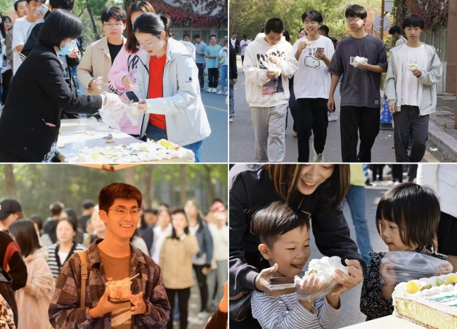 活動現場,氤氳著蛋糕的香氣,洋溢著廣大師生共同的心愿。在校師生、返校校友紛紛駐足,共享蛋糕,合影留念,在這個屬于每一位“山農人”的節日里,共同為山東農業大學送上最真摯的生日祝福,祝福她奮進一流、再譜新篇。