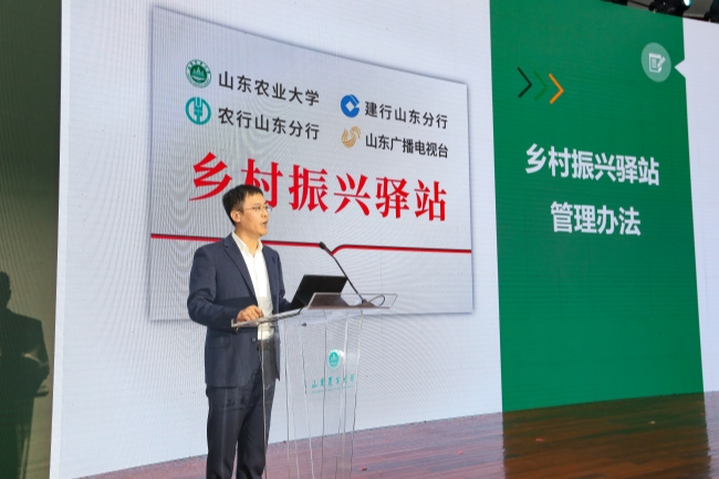 山東農業大學農業大數據中心副主任張亮教授介紹鄉村振興驛站管理和APP建設有關情況。與會領導共同發布山東農業大學開發的鄉村振興驛站APP,并為全省16地市32個鄉村振興驛站代表進行授牌。根據《鄉村振興驛站管理辦法(試行)》的規定,基于對5,5077個行政村調研數據綜合分析研判遴選,決定首批設立1003個鄉村振興驛站。鄉村振興驛站將集聚山東農大、建設銀行山東分行、農業銀行山東分行和山東廣播電視臺等四方優勢,深入開展成果轉化、技術推廣、人才培養、信息和金融服務,全面服務地方產業發展。