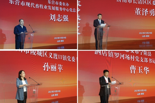 東營市委農辦、東營市現代畜牧業發展服務中心黨總支書記、主任劉志強,濟南市長清區區委副書記董澤勇,德州市陵城區義渡口鎮黨委書記孫麗蘋,泰安市寧陽縣泗店鎮羅河廠村黨支部書記、村主任曹玉華作為地方代表分別發言,共同研討大調研工作,希望今后與山東農業大學等單位進一步互通有無、深化合作,推動鄉村振興不斷向多領域、深層次、立體式拓展。