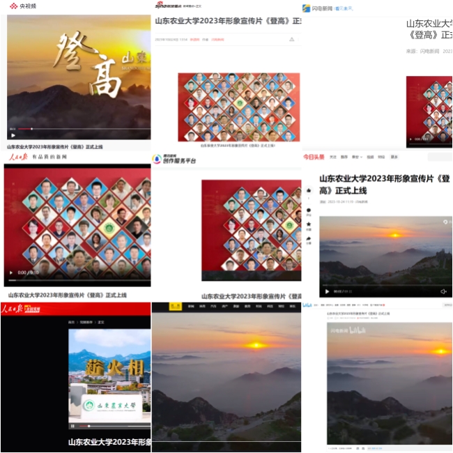 10月24日,在“萬名學子聯萬村,我為家鄉做貢獻”大調研成果發布暨總結表彰會上,我校2023版形象宣傳片《登高》首映。充滿力量的語言、生動質感的畫面、磅礴厚重的配樂,讓現場500余名觀眾通過一場視聽盛宴切身感知了山東農業大學底蘊深厚的百年辦學歷史、桃李群芳的人才培養成就、碩果累累的科研創新成績和全體農大人奮勇登高、爭創一流的信心與決心。同時,學校通過融媒宣傳渠道向全網推介宣傳片。據統計,截至全網推送24小時內,包括人民網、央視頻、全國黨媒信息平臺、閃電新聞等新聞客戶端和微信、微博、抖音、B站、頭條等新媒體平臺上已收獲點擊播放量超過150萬,引起社會各界廣泛關注和熱烈反響。