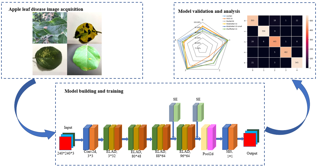 近日,機械與電子工程學(xué)院宋月鵬教授團(tuán)隊在《Frontiers in Plant Science》在線發(fā)表了題為“Construction and verification of machine vision algorithm model based on apple leaf disease images”的研究論文,宋月鵬教授、任龍龍講師為該論文的通訊作者,高昂博士生為該論文的第一作者。