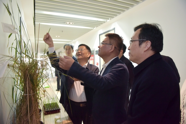 11月8日,山東省科學技術廳黨組書記、廳長孫海生帶隊來校調研指導,聽取學??萍紕撔鹿ぷ鲄R報,參觀小麥育種全國重點實驗室。學校黨委書記徐劍波,黨委副書記、校長冷暢儉,省科技廳黨組成員、副廳長潘軍,泰安市委常委、副市長姜寧參加活動。