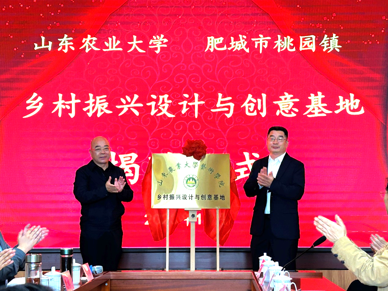 近日,學校與肥城市山東鴻德鄉村振興發展有限公司簽署合作協議,掛牌成立“山東農業大學鄉村振興設計與創意基地”和“山東農業大學教學科研實踐育人基地”。黨委常委、副校長高立明,泰安市文聯黨組書記、主席鹿鋒,肥城市副市長韓志遠出席活動并共同為基地揭牌。