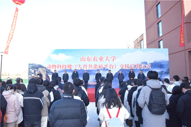 11月30日,山東農業大學動物科技樓(人獸共患病平臺)交接啟用儀式在山東農業大學泮河校區東南片區舉行。黨委書記徐劍波,黨委副書記、校長冷暢儉出席儀式,校領導嵇景濤、劉戈、單國杰參加活動,黨委常委、副校長高立明主持啟用儀式。
