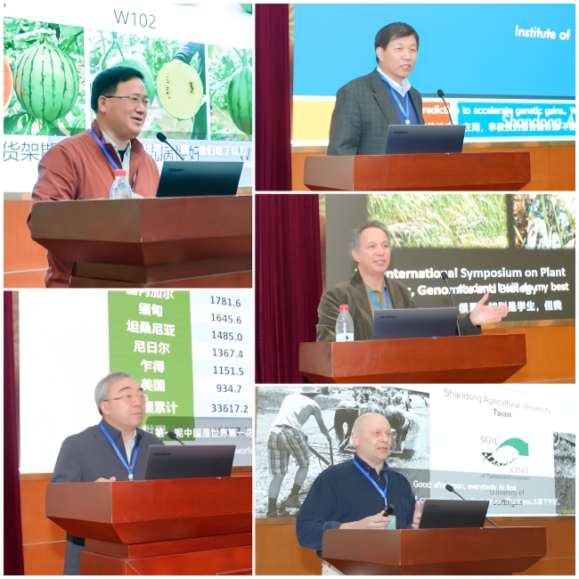 開幕式結(jié)束后,鄧興旺院士,張新友院士,德國(guó)哥廷根大學(xué)農(nóng)學(xué)院Yakov Kuzyakov教授,美國(guó)路易斯維爾大學(xué)化學(xué)系和生理系張翔教授,美國(guó)佐治亞大學(xué)作物與土壤科學(xué)院李增祿教授,土耳其庫(kù)克洛瓦大學(xué)農(nóng)學(xué)院Hakan ?zkan教授,美國(guó)俄亥俄州立大學(xué)植物病理系夏燁副教授,中國(guó)農(nóng)業(yè)大學(xué)農(nóng)學(xué)院郭偉龍副教授,山東農(nóng)業(yè)大學(xué)農(nóng)學(xué)院劉樹兵教授等13位國(guó)內(nèi)外知名專家、學(xué)者作學(xué)術(shù)報(bào)告。專家學(xué)者們圍繞玉米、小麥、花生等主要糧食及經(jīng)濟(jì)作物的“綠色生產(chǎn)與安全健康”展開交流匯報(bào),介紹了我國(guó)主要糧食及經(jīng)濟(jì)作物精準(zhǔn)設(shè)計(jì)育種的發(fā)展,我國(guó)花生產(chǎn)業(yè)發(fā)展的現(xiàn)狀及野生種質(zhì)的研究利用,植物抗病過程中益生微生物的多種功能角色,小麥多組學(xué)大數(shù)據(jù)整合輔助分子育種,膜運(yùn)輸依賴的植物免疫系統(tǒng)研究,納米技術(shù)在中草藥植物研究中的應(yīng)用與綠色生化合成生物學(xué)等研究成果。我校3位學(xué)生參與此次交流,圍繞各自的專業(yè)研究進(jìn)行了學(xué)術(shù)匯報(bào)。