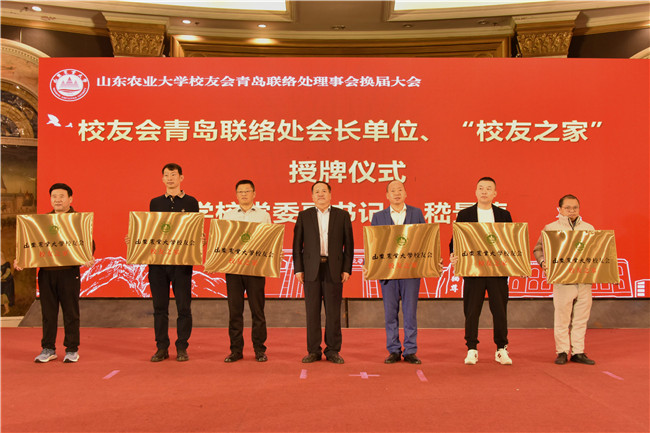 12月9日,山東農業大學助力青島鄉村振興論壇暨山東農業大學校友會青島聯絡處理事會換屆大會在青島舉行。山東農業大學黨委書記徐劍波,青島市人大黨組副書記、副主任李紅兵出席會議,共同為山東農業大學校友會青島聯絡處揭牌。山東農業大學黨委副書記嵇景濤主持論壇,并為校友會青島聯絡處會長單位、“校友之家”單位授牌。