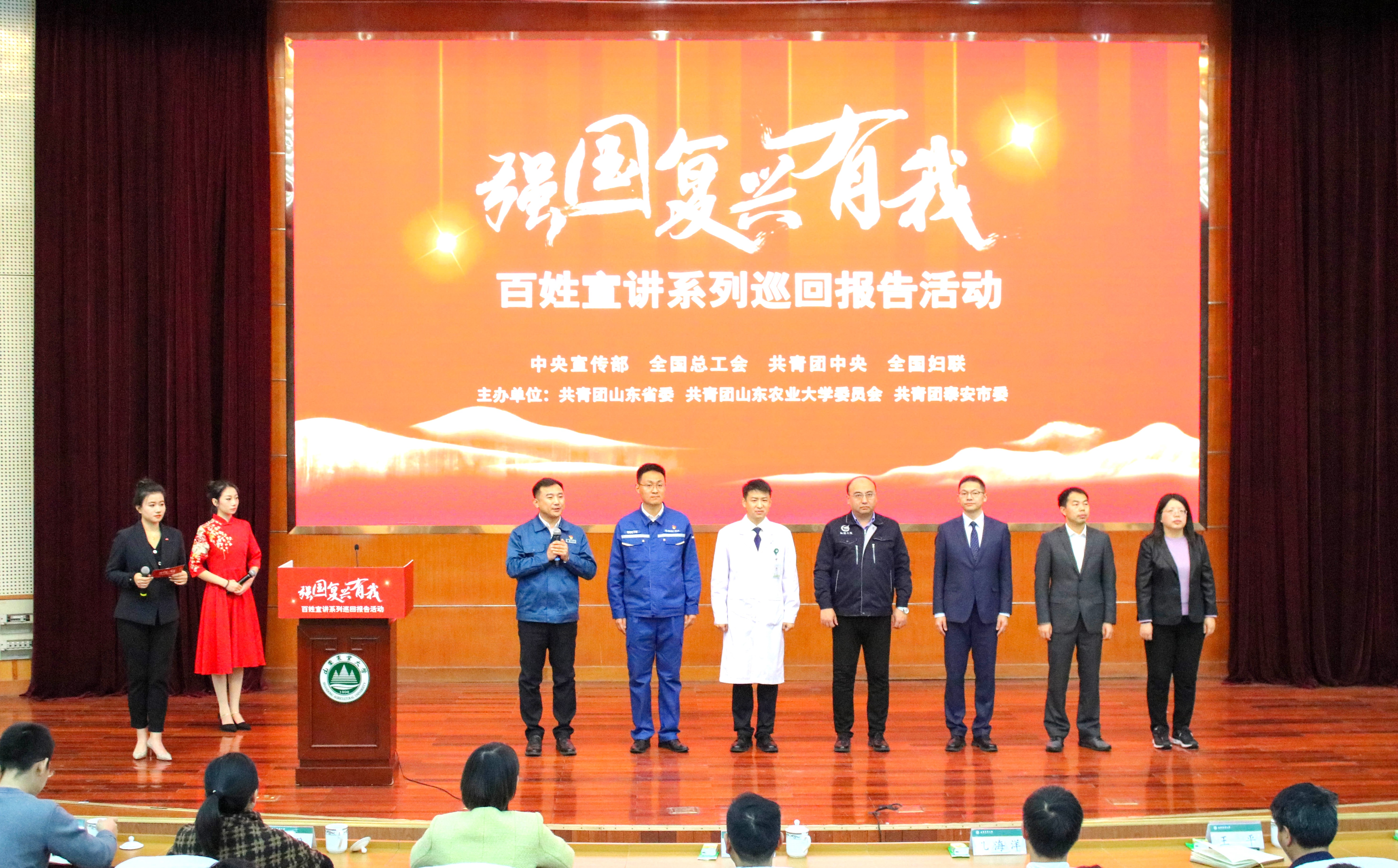 12月14日,由中央宣傳部、全國總工會、共青團(tuán)中央、全國婦聯(lián)指導(dǎo),共青團(tuán)山東省委、山東農(nóng)業(yè)大學(xué)團(tuán)委、共青團(tuán)泰安市委聯(lián)合主辦的“強(qiáng)國復(fù)興有我”百姓宣講系列巡回報(bào)告活動在山東農(nóng)業(yè)大學(xué)舉辦。學(xué)校黨委副書記嵇景濤會見宣講團(tuán)一行。