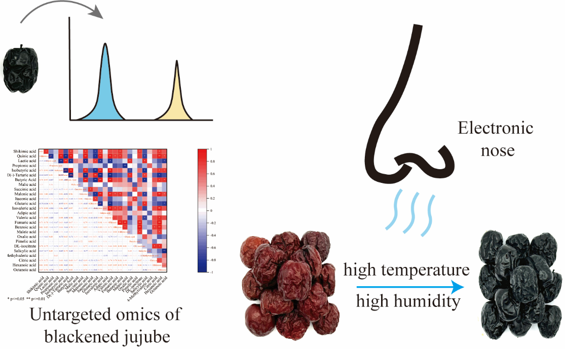 近日,山東農業大學大學果蔬加工團隊張仁堂等在Food Chemistry在線發表了題為“Organic acid and aromatic compounds create distinctive flavor in the blackening process of jujube”的研究論文。山東農業大學為文章第一署名單位和通訊作者單位,碩士研究生張鑫為第一作者。山東農業大學副教授、樂陵市健康食品產業技術研究院副院長張仁堂為通訊作者。