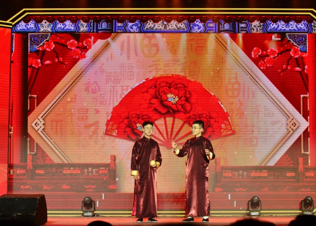 相聲《沖一流》表達了農(nóng)大人踔厲奮發(fā)、實干拼搏、矢志沖一流的決心信心。舞臺劇《我們的大調(diào)研》演繹了暑期“萬名學子聯(lián)萬村 我為家鄉(xiāng)做貢獻”大調(diào)研實踐經(jīng)歷,展現(xiàn)出山農(nóng)師生懷揣知農(nóng)愛農(nóng)情懷踏入鄉(xiāng)村,積極投身于服務一線實踐的生動場景。