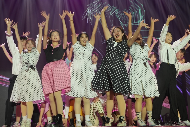競技場上的優(yōu)秀運動員聯(lián)袂帶來的運動風采展示的蓬勃朝氣再次點燃全場。原創(chuàng)歌曲《岱下青年》用音符傳遞出岱下學子努力拼搏、奮勇爭先的精神面貌,朗誦《我們的青春》呈現(xiàn)出一代代農(nóng)大兒女在青年時期志存高遠、踔厲奮發(fā)的使命擔當。晚會在《乘風破浪》歌舞中落下帷幕。