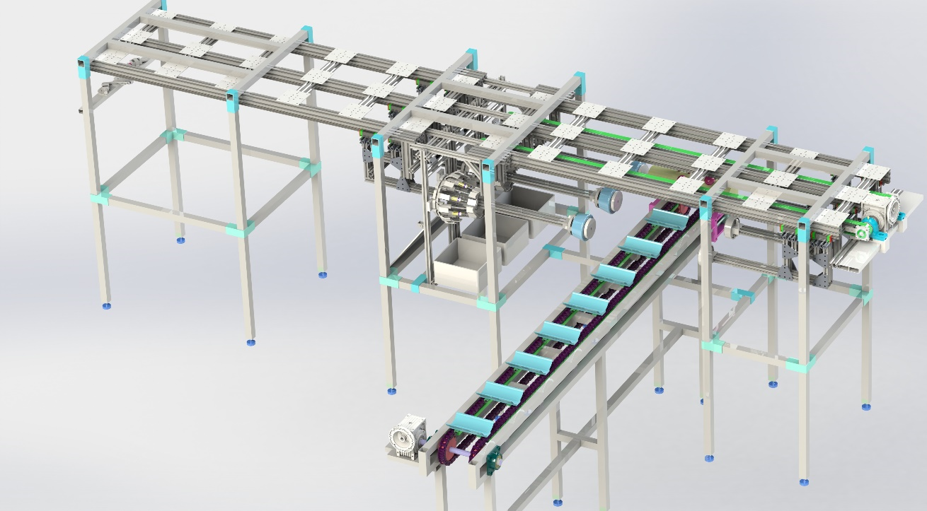 該研究構建了香菇采摘試驗平臺,并進行了試驗室內模擬采摘試驗和香菇生產工廠實地采摘試驗(圖3)。試驗結果驗證了新型機械化采摘模式和末端執行器,可提高采摘效率,具有很強的有效性和可行性,研究團隊以此為基礎設計了適用于香菇生產線的批量采收裝(圖4)備。該技術有望為提高香菇采摘環節的工廠化生產提供了重要核心裝備,為打造食用菌智慧工廠化生產和綠色發展提供了山東農業大學方案,對國際香菇產業發展方向產生重要引領性作用。