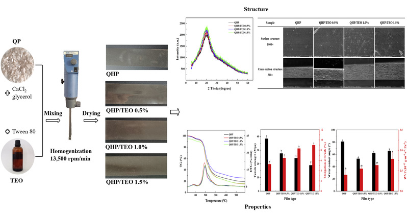 近年來,由于石油基包裝材料對環(huán)境問題和食品安全產(chǎn)生了嚴(yán)重的負(fù)面影響,生物聚合物基食用包裝材料的開發(fā)受到了極大的關(guān)注。果膠由于其無毒性、可降解性和良好的凝膠性等被認(rèn)為是一種潛在的成膜材料。季銨鹽改性具有一定抑菌活性。另外,由于微生物引發(fā)的食品安全問題以及合成抗菌劑帶來的耐藥性問題,含有天然抗菌劑的包裝膜的制備已成為研究熱點(diǎn)。百里香精油(TEO)是植物次生代謝產(chǎn)物,安全無毒,對多種細(xì)菌表現(xiàn)出有效的抗菌能力。本研究以山楂碎片為原料,制備季銨鹽化山楂果膠(QHP)/TEO復(fù)合薄膜,研究不同濃度的TEO對QHP薄膜結(jié)構(gòu)、理化性能、抗氧化性能和抗菌性能的影響。研究證實(shí)TEO對薄膜有增塑作用,提高了薄膜的斷裂伸長率。復(fù)合薄膜表現(xiàn)出較高的紫外線屏蔽、抗氧化和抗菌性能。研究結(jié)果將為QHP/TEO復(fù)合薄膜在食品包裝中的潛在應(yīng)用提供理論基礎(chǔ),為食品包裝行業(yè)提供了新的材料,同時拓寬了果膠在食品工業(yè)中的應(yīng)用。