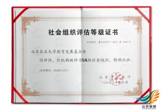 山農融媒1月27日訊 近日,學校教育發展基金會在省民政廳組織開展的2023年度省管社會組織評估工作中獲評5A級社會組織稱號。本次獲評是學校教育發展基金會繼2018年全省首次開展社會組織評選獲得5A級稱號后,再次獲評該榮譽。
